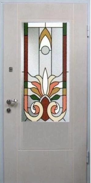 Входные двери в Сарапуле с применением декора витражом изготавливаются из стального профиля, придающего прочность конструкции, а сама витражная вставка обладает высокой взломостойкостью, поскольку для витражных композиций используется специальное стекло, обработанное особым образом. Усилить надежность витражного элемента можно с помощью использования декоративных кованных решеток.