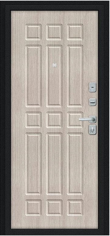Надежная входная Дверь Браво Мило МФ/BChrome Букле черное/Cappuccino Melinga премиум класса по цене 33 247 руб. Большая толщина стали защитит от проникновения в ваш дом, квартиру или коттедж. Используется очень качественная фурнитура: замки, цилиндры, ручки, защелки. Покрытие и отделка двери изготовлено под внимательным контролем производителя. Дверь имеет долгий срок службы и гарантию.