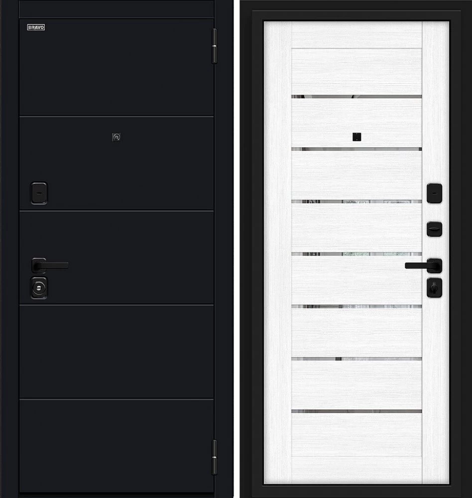 Надежная входная Дверь Браво Прайд Total Black/Snow Melinga премиум класса по цене 39 597 руб. Большая толщина стали защитит от проникновения в ваш дом, квартиру или коттедж. Используется очень качественная фурнитура: замки, цилиндры, ручки, защелки. Покрытие и отделка двери изготовлено под внимательным контролем производителя. Дверь имеет долгий срок службы и гарантию.