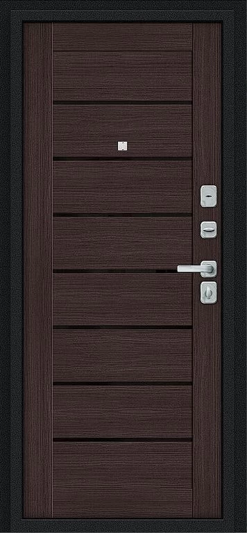Дверь Браво Техно/BChrome Букле черное/Wenge Melinga - недорогая эконом класса по цене 4 247 руб., отлично подходит для временной установки в квартиру под сдачу, строительство, ремонт. Не смотря стоимость, модель хорошего качества.